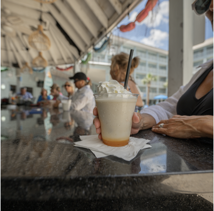 Nothing says island time like an ice-cold drink in hand! Whether you’re cooling off with a frozen cocktail, sipping on a refreshing local brew, or enjoying a crisp glass of wine, The Beach Bear has the perfect pour for every poolside moment. So sit back, relax, and raise a glass to good vibes and great times.